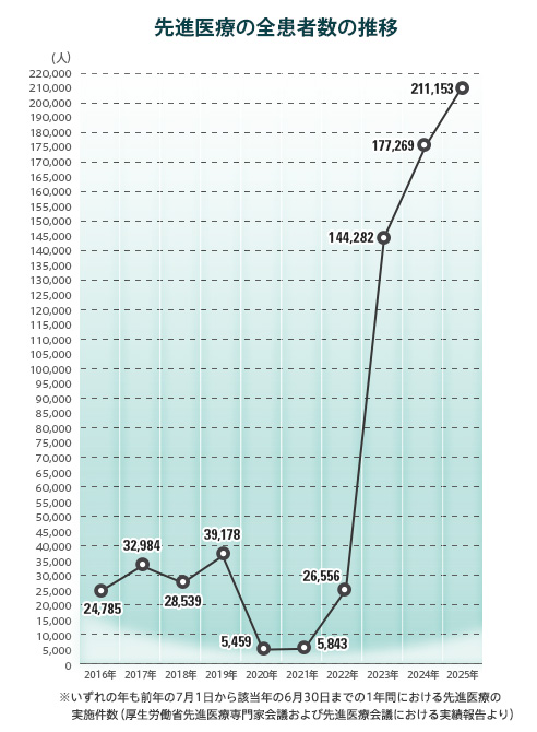 厚生労働省先進医療会議における「令和7年度実績報告」(2024年7月1日から2025年6月30日の実績)をもとに当社にて試算。